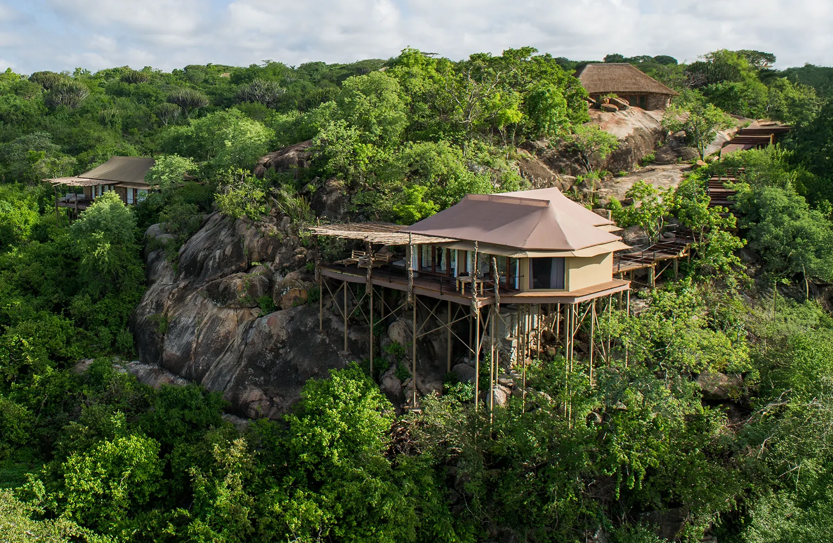 Elevated atop the boulders of an ancient outcrop, within the seclusion of our exclusive-use protected wildlife area, Mwiba Lodge stands sentinel over the Arugusinyai River gorge and the wooded wilderness beyond. This is the true wild — where the wind sings the land’s stories through whistling thorns and the night’s silence is broken by distant leopard calls.
