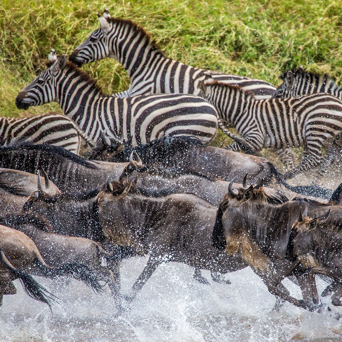 to the region’s most sought-after sights, including the Great Migration’s dramatic river crossings, lions lazing in trees, magnificent big tusker elephants, and more.