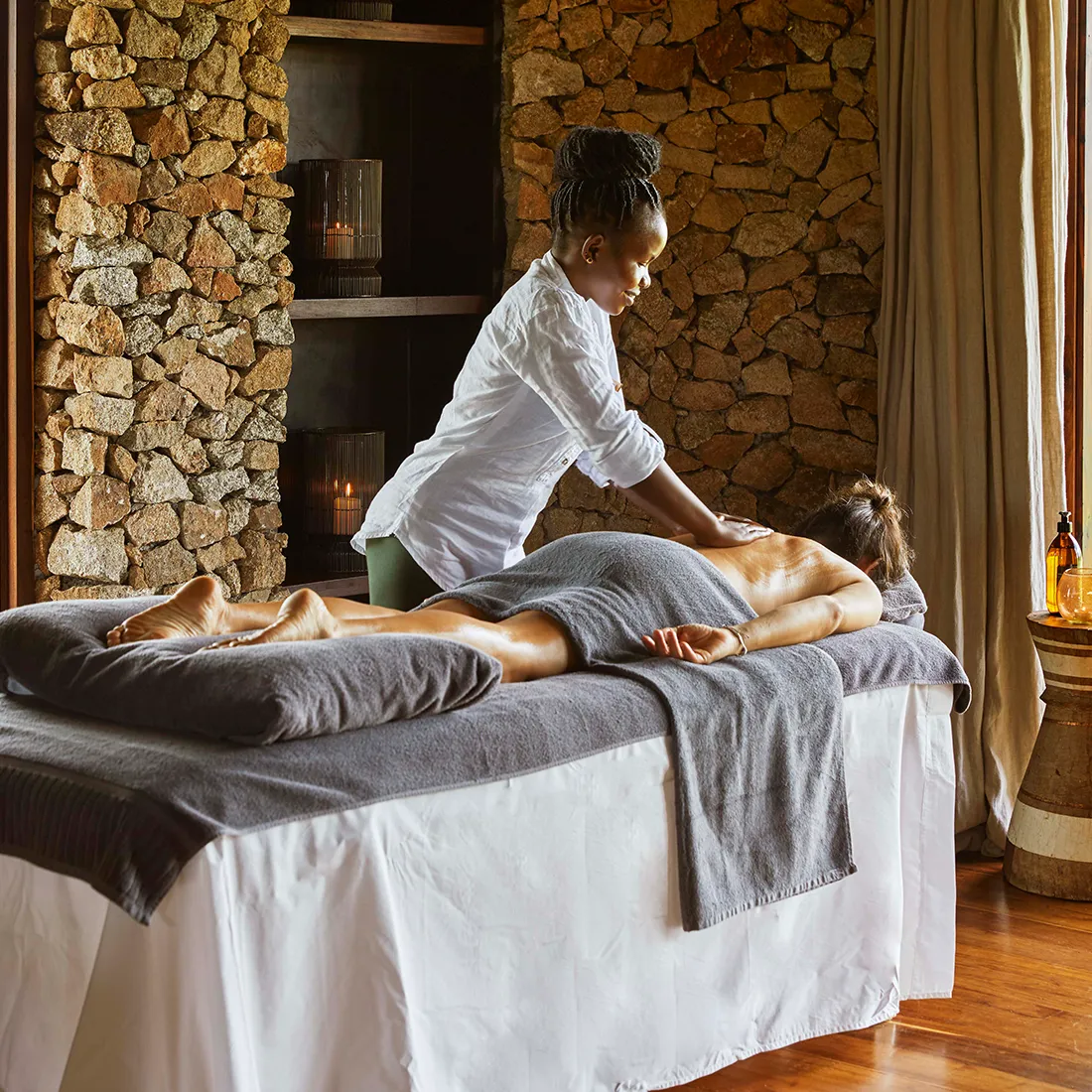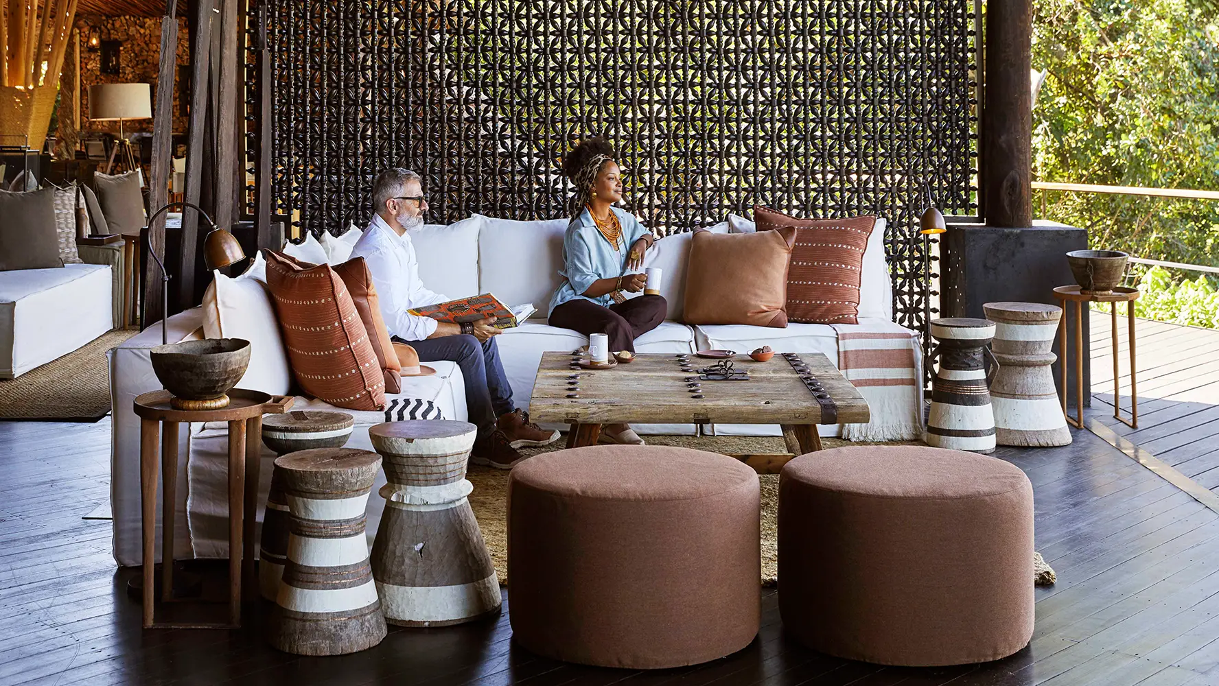 Each spacious suite in this luxury lodge spills onto a private deck with sweeping wilderness vistas beyond. Billowing linens, hand-carved wooden furniture, and brass fixtures embody contemporary safari sophistication, while deep-soaking tubs and palatial king beds invite restoration after an action-packed day.